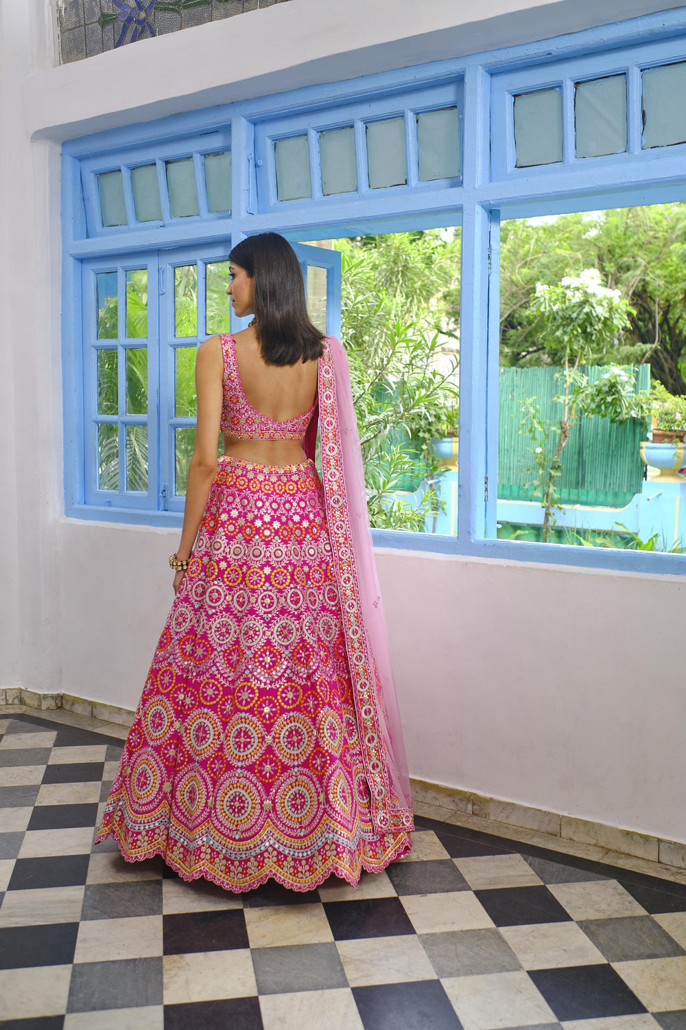 Fushcia Pink Circles Lehenga