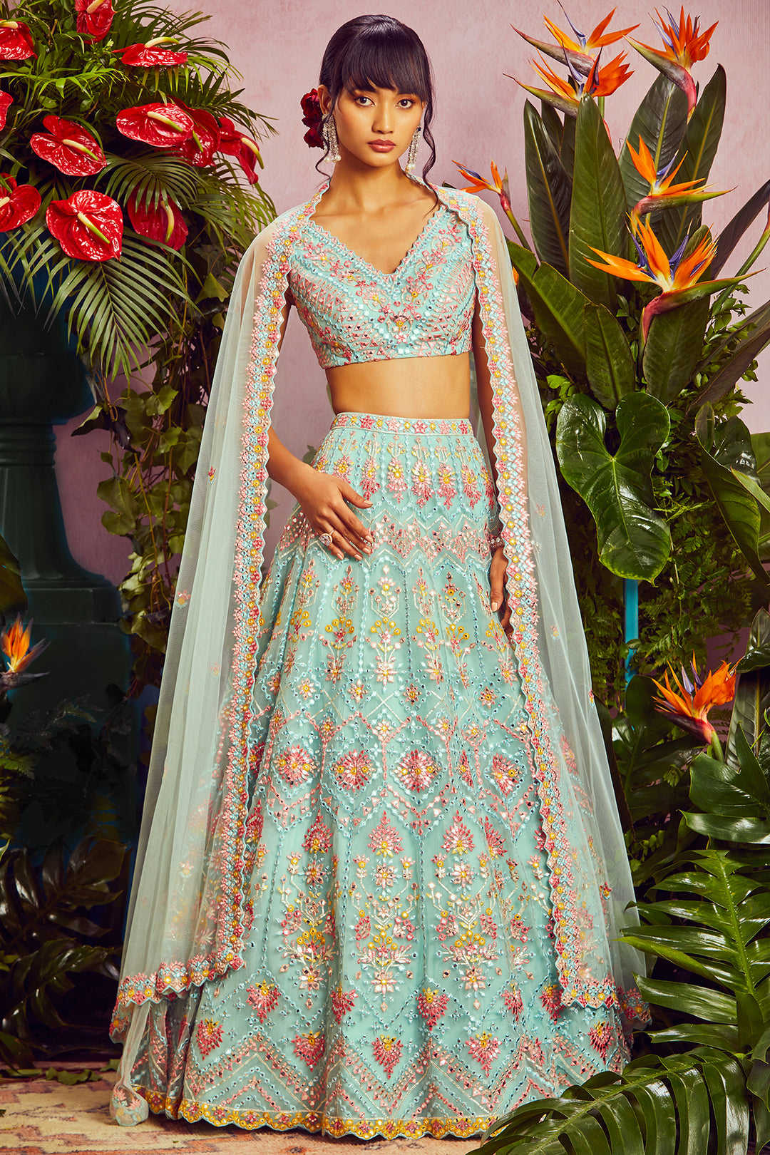 Lehengas are a great way to look and feel your best on your wedding day. Aneesh Aggarwal is a leading couture label offering some of the finest bridal lehengas Jacket Lehenga and Lehenga Saree. From vibrant silhouettes, eccentric designs, intricate detailing, and only the softest fabrics, you can pick your dream ensemble from a myriad of creations. With contemporary designs and heavy embroidery, this designer takes pride in crafting some of the most lavish-looking lehengas to make you look stunning. The label doesn’t only stick to conventional colours that we’ve been seeing through the last few decades. Exotic hues like parrot green, lime turquoise, teal, rani pink, emerald green, and much more, you can pick from some of the most striking hues. The double-coloured details on each one of the lehengas add a touch of grace to the overall look.