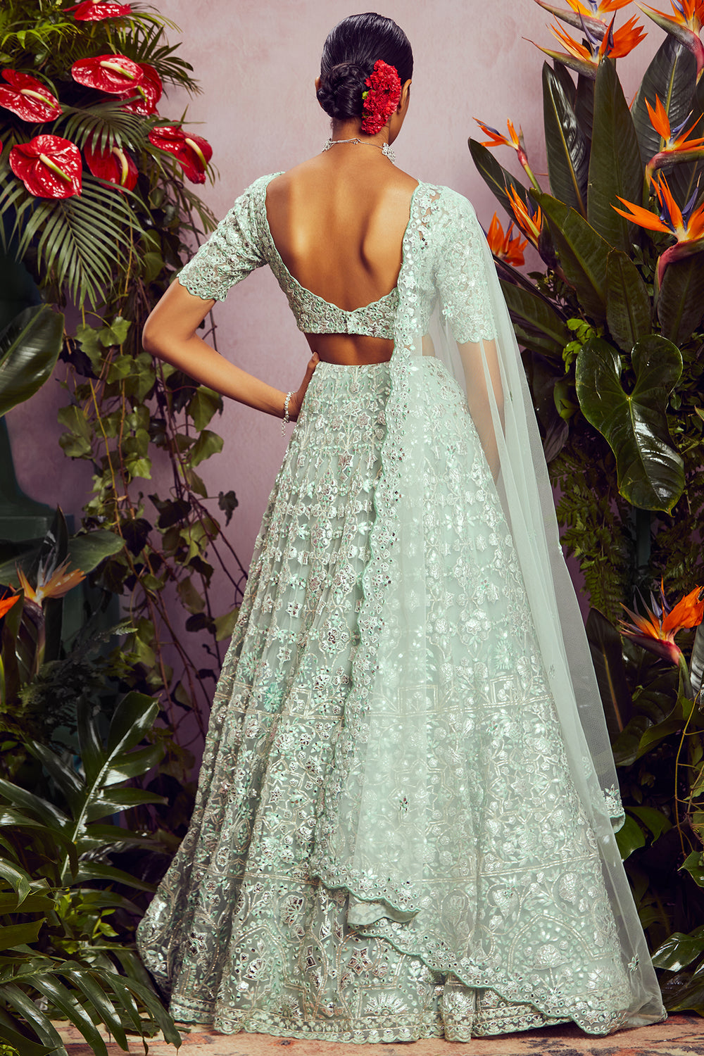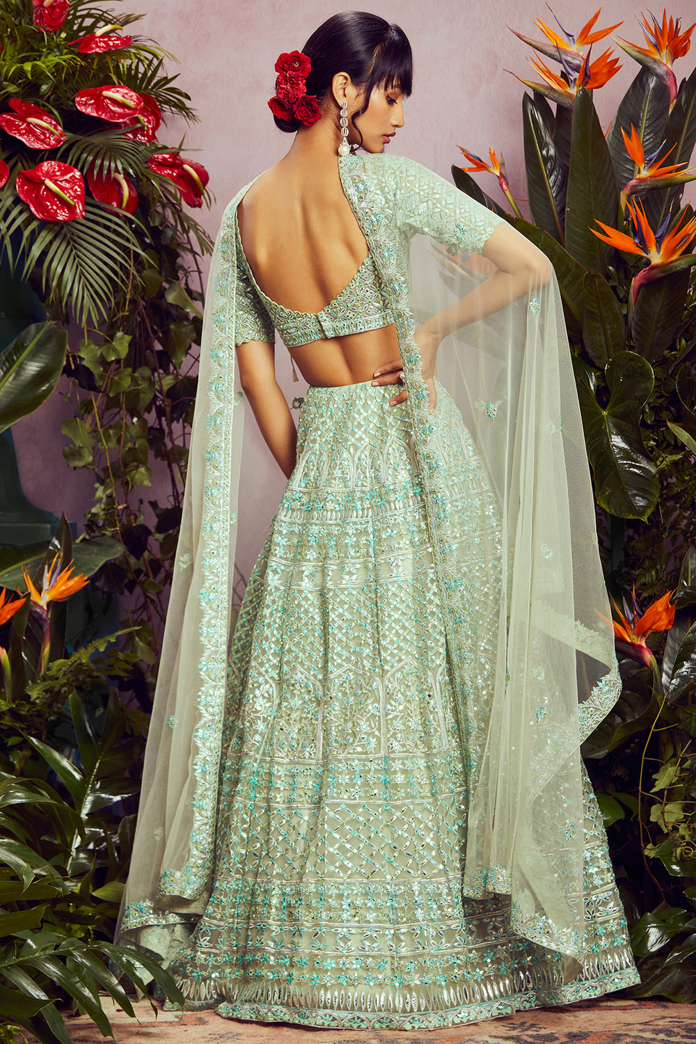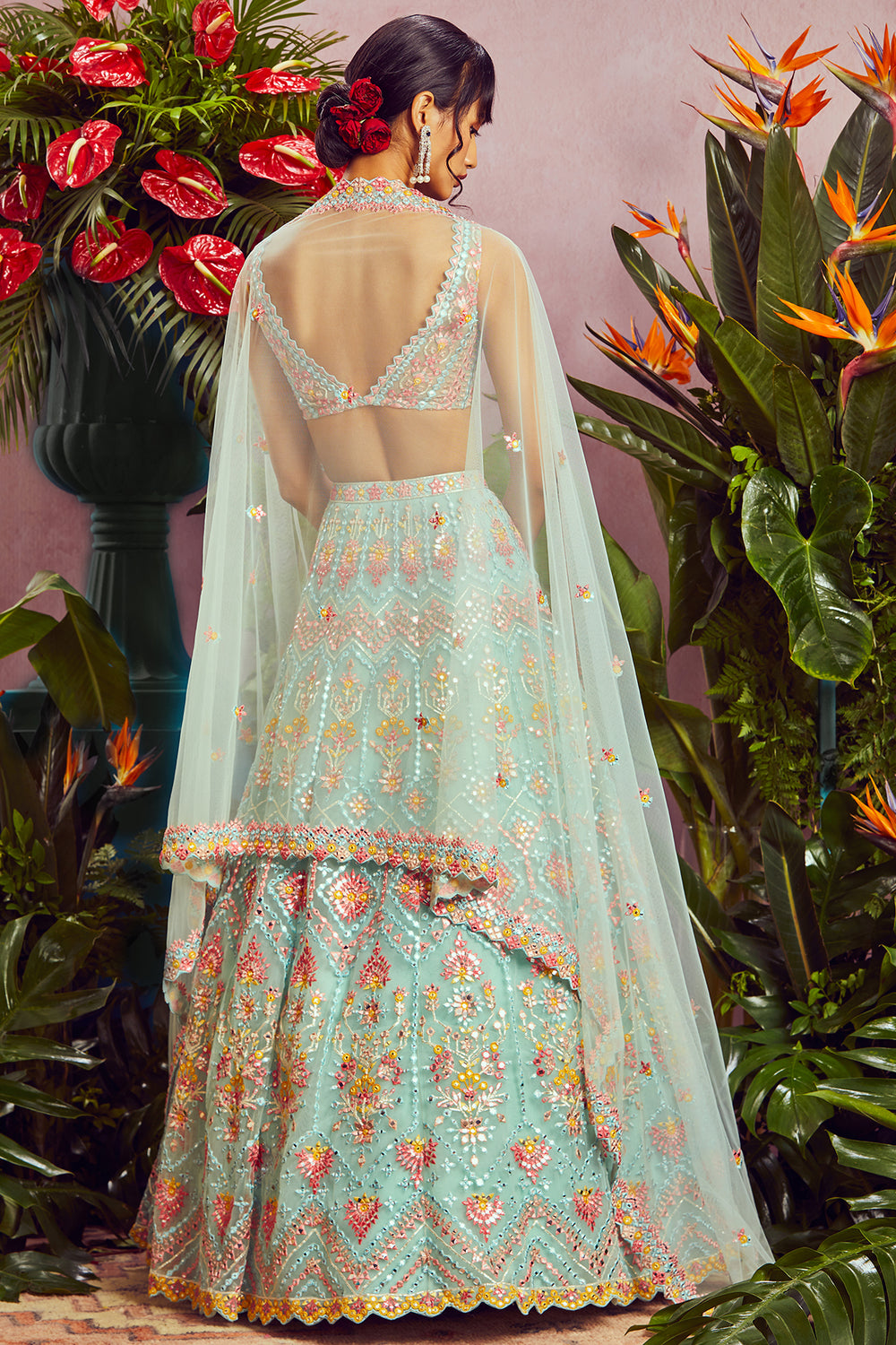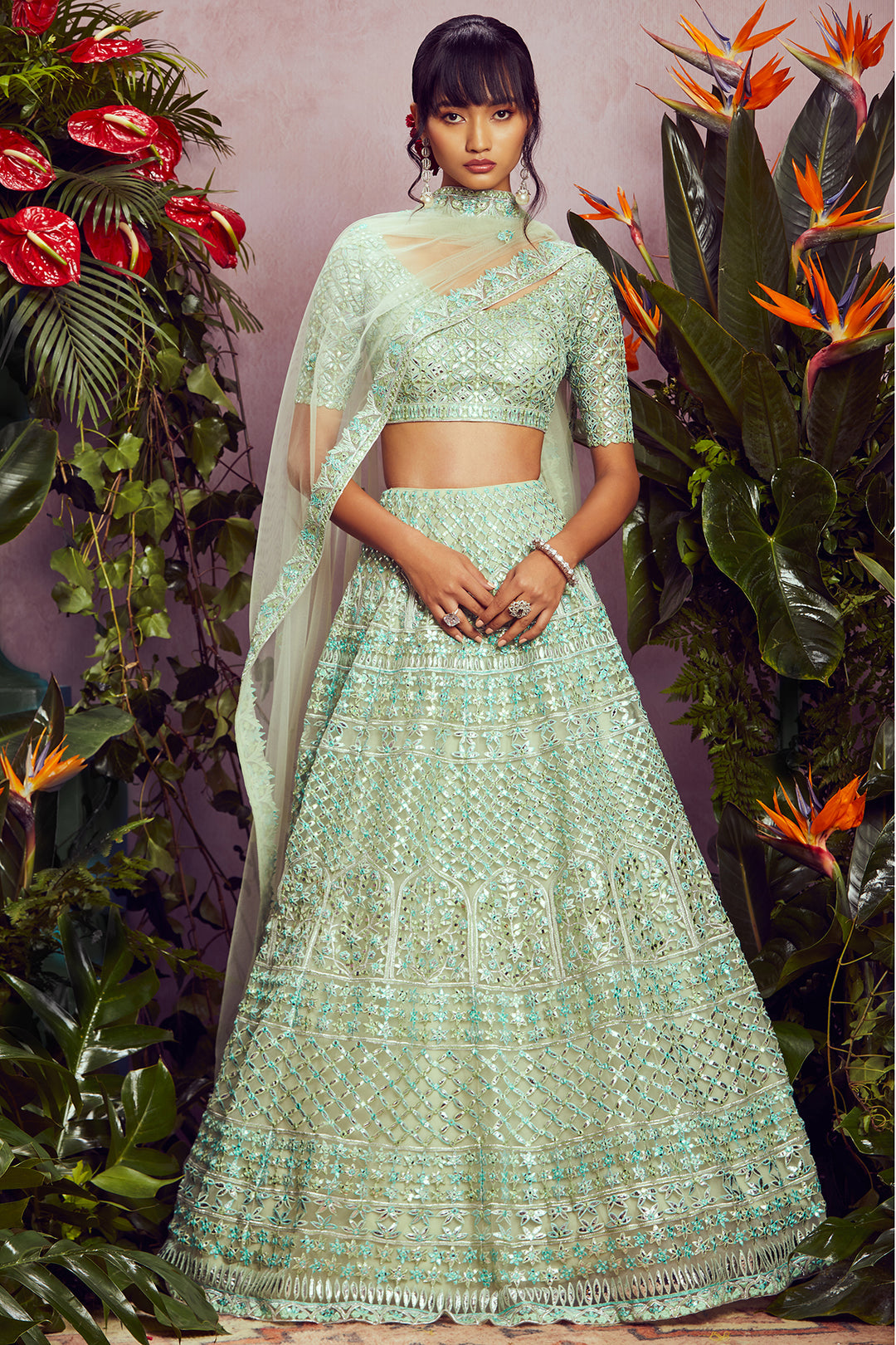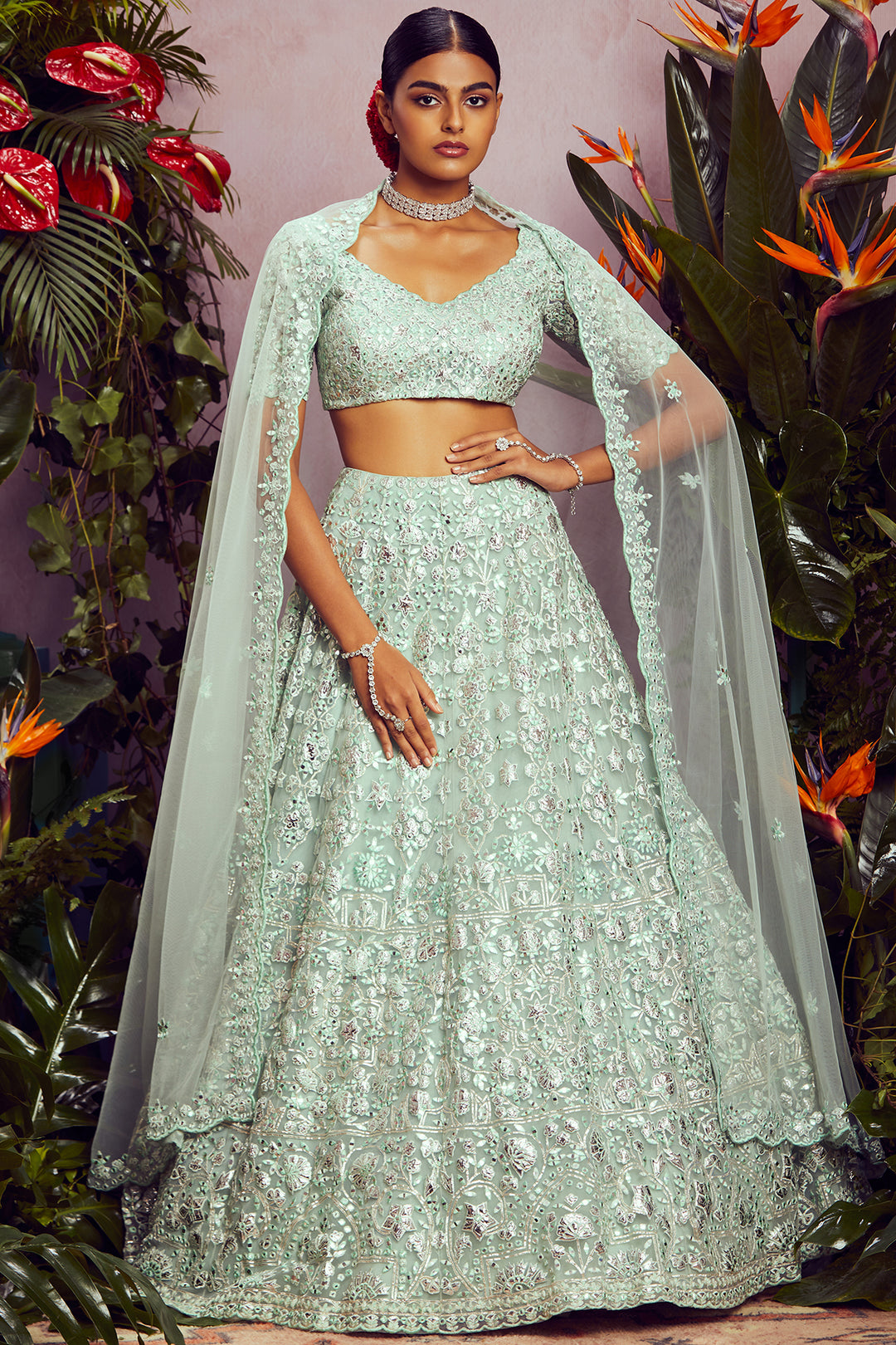 Your wedding might be one of the most important occasions of your life and looking your very best on your day doesn’t have to be that hard. Aneesh Aggarwal’s latest bridal wear collection allows every bride to take her fashion game to the next level. The heavily embroidered lehengas are comfortable to wear, so be guaranteed to feel like a million bucks on your special day. The captivating line-up of lehengas features a range of elegant styles and sophisticated designs. The emerald green organza lehenga set from the collection will take your breath away with its extensive mirror work, spectacular prints, and impeccable thread work. It features a plethora of gorgeous hues, along with a net dupatta that adds the perfect touch to your look. The delicately-designed blouse has a breathtaking back design and elegant sleeves. For a simple and classy look, go for the blue Barik lehenga set that comprises glorious floral motifs and an embroidered border. The heavy mirror work and foil appliqué will undeniably leave you mesmerised. You can also check out other occasion wear for women by Aneesh Agarwaal, which features stunning designs for the modern woman.