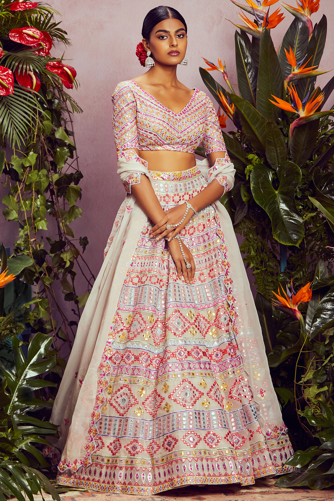 Bring out the best version of yourself in a chic embroidered bridal lehenga by Aneesh Agarwaal.
