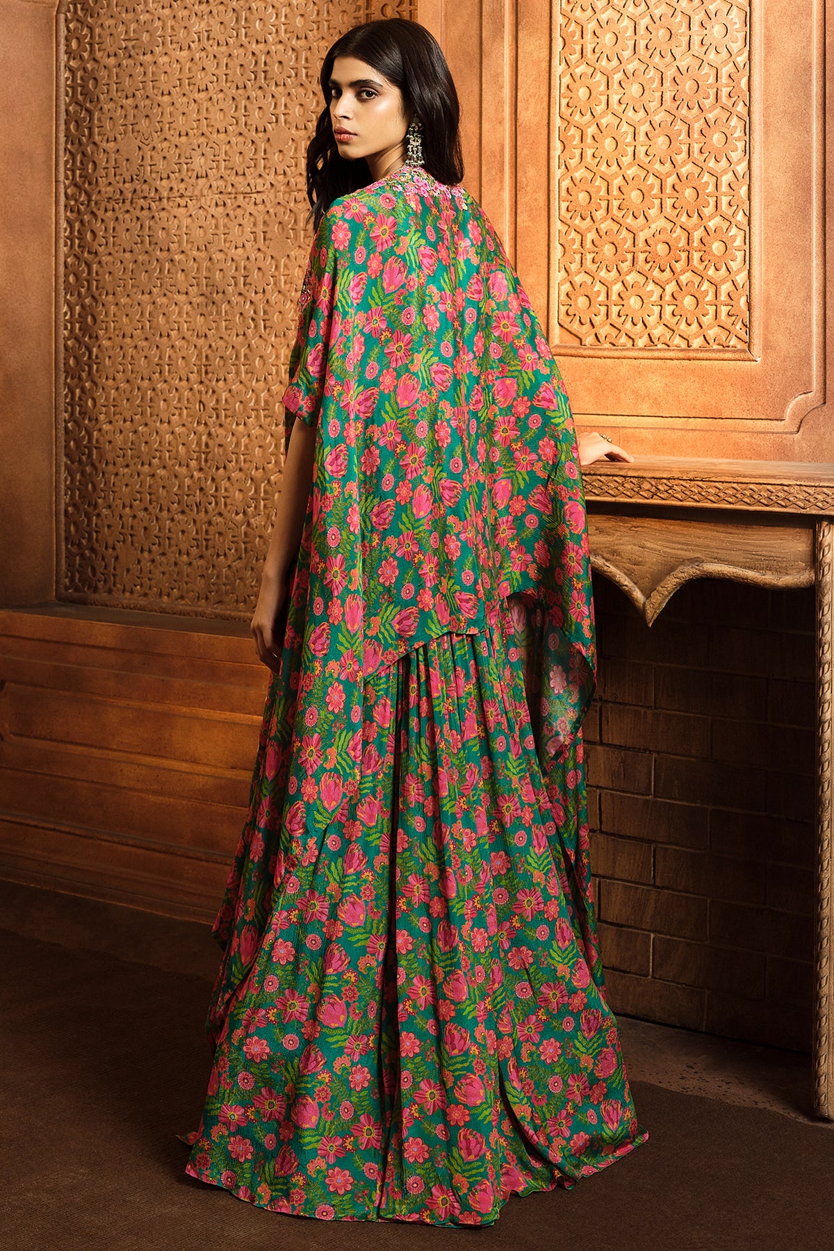 Emerald Green Printed Cape Skirt Set