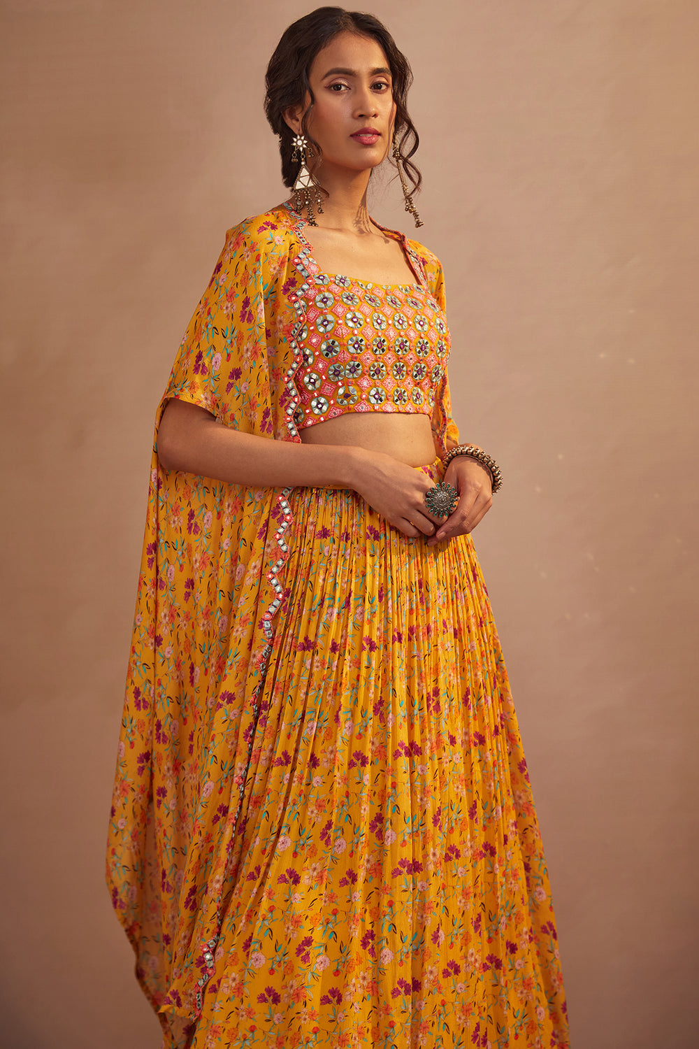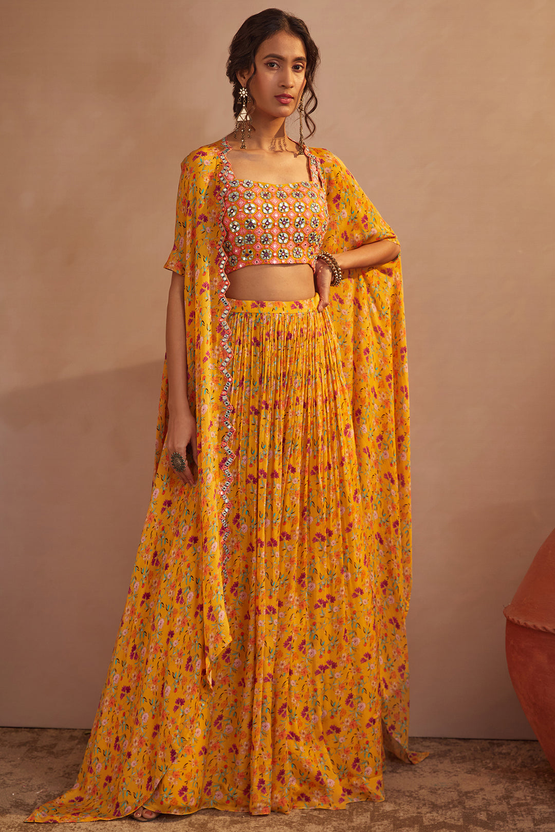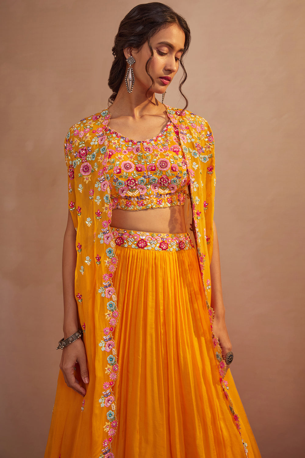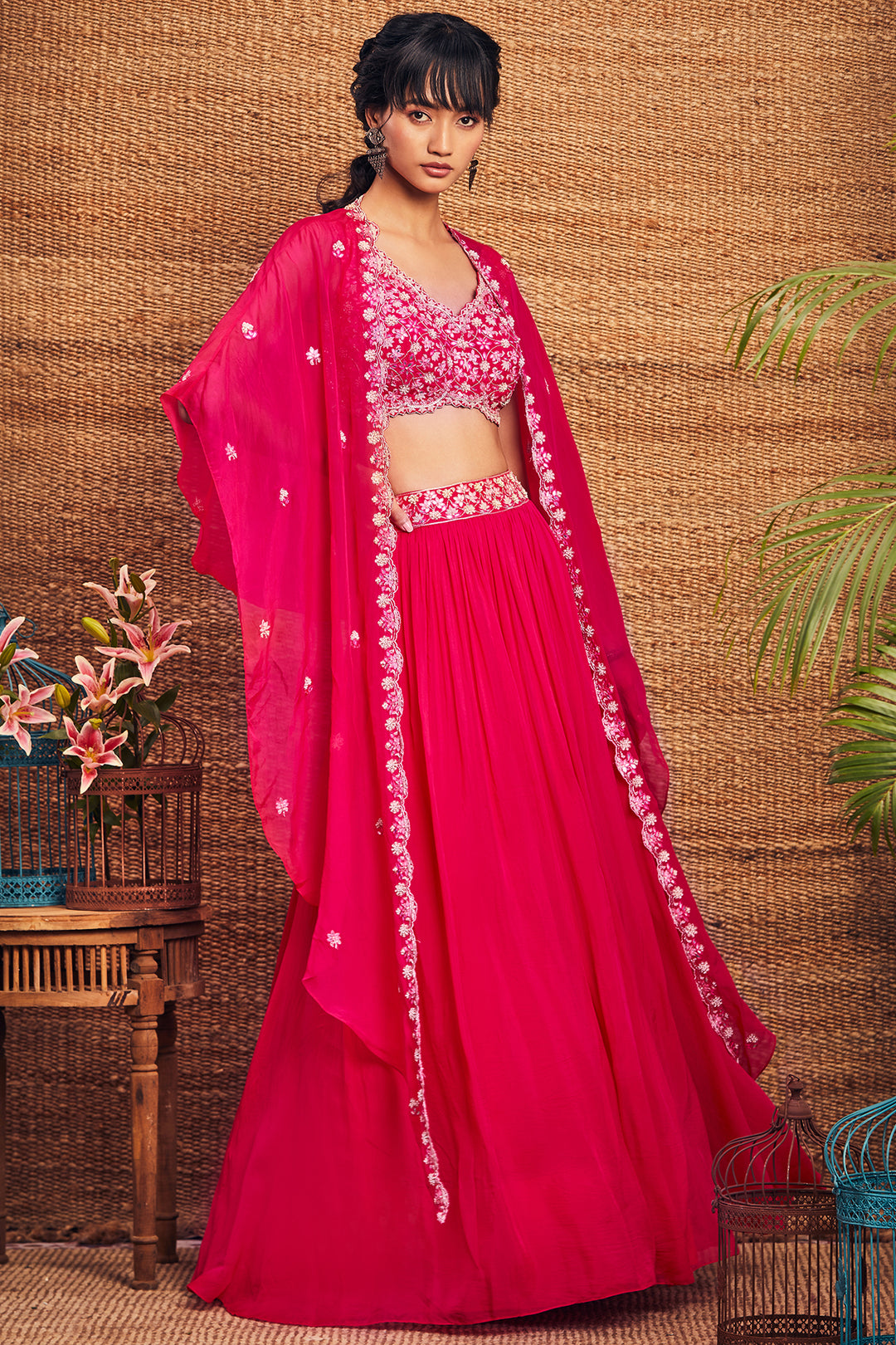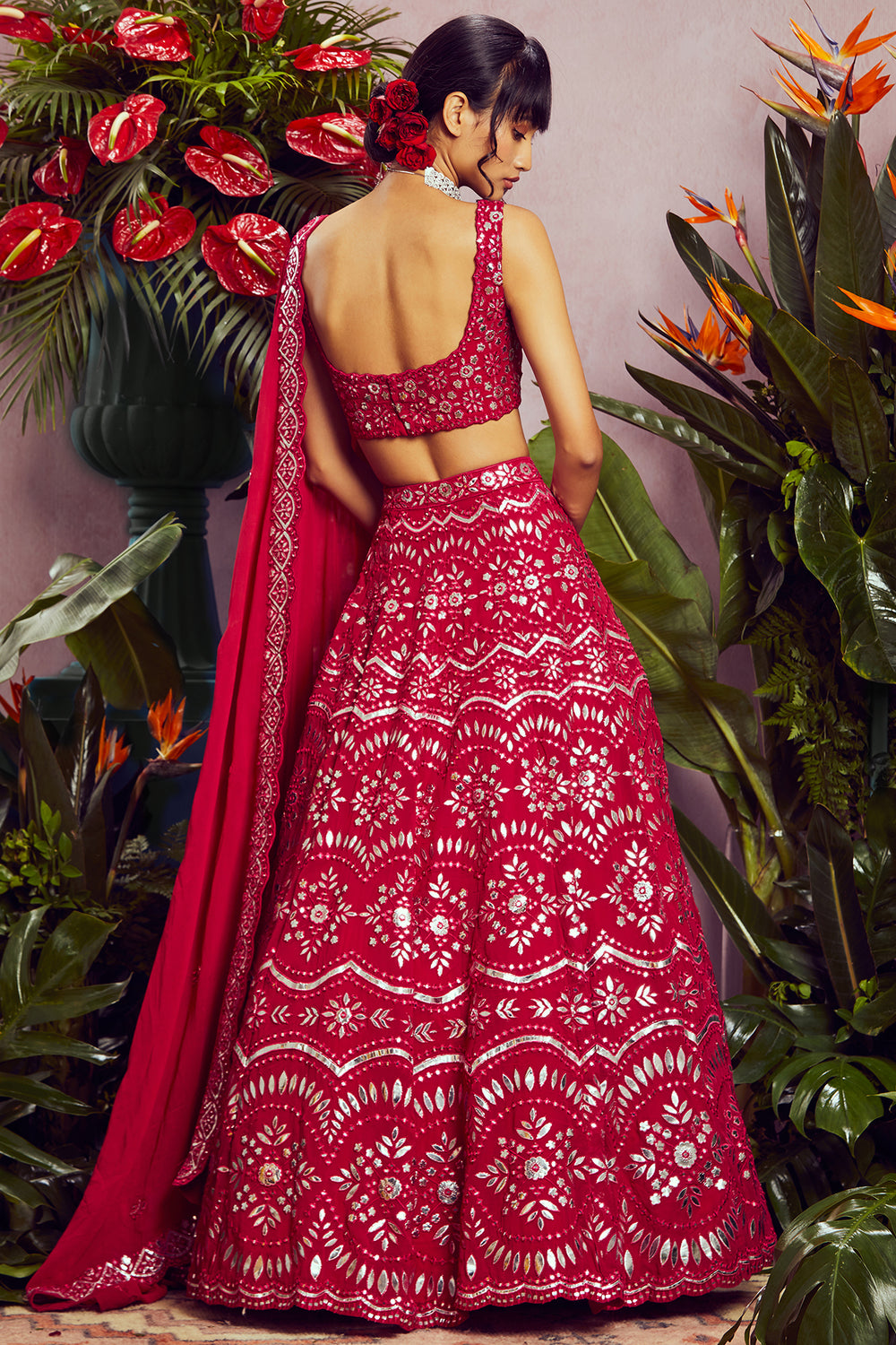 If you want to seem traditional, modern, and Indian, Aneesh Agarwal's lehengas are gorgeous ethnic wear. If you're looking for a timeless and fashionable outfit with an Indian flair, an embroidered jacket and lehenga combo is perfect. On your special day, wedding lehengas in a variety of lovely designs and patterns will offer you a soft and alluring bridal appearance. Traditional lehengas are best suited for bridesmaids and are always prepared for a sleek, glistening appearance. The greatest fusion lehengas to have an Indo-Contemporary look with the sophisticated style are those with a myriad of patterns, such as embroidered cape lehengas, jacket and lehengas, organza cape, and skirt lehenga sets with distinctive blouse designs. Pre-draped sarees, ruffle sarees, and patterned sarees are fantastic options for ethnic wear. Aneesh Aggarwal also has sarees with floral and polka-dot motifs to offer you a stunning appearance.