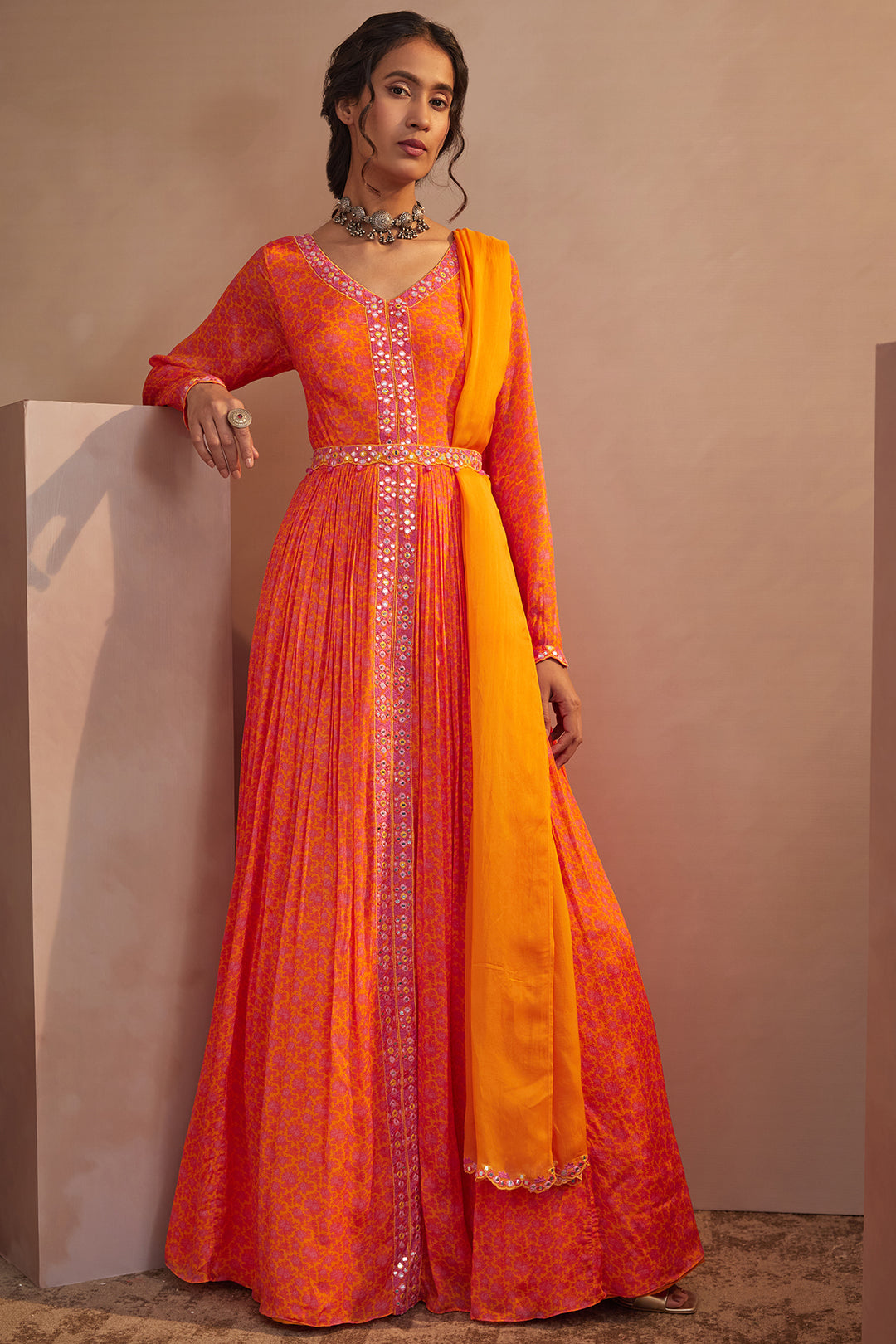 Aneesh Aggarwal is a pioneer of innovative modern womenswear. The label's ensembles are steeped in culture and history. The basic principle of the label is to create heirloom-quality, timeless designs and work hard to provide very lightweight clothing so you may fully enjoy your festivities. The goal is to produce designs that call for labour-intensive, traditional processes, such as hand stitching and hand dyeing, Designer Wedding Gowns, Pre Stitched Saree to help and support as many artists as they can. The Indian wedding wear collections by Aneesh Agarwaal feature exquisite designs that are sure to make you look and feel your absolute best. With stunning Anarkalis, Sharara sets, Skirt sets, Dresses, Sarees and more, there's something for everyone!