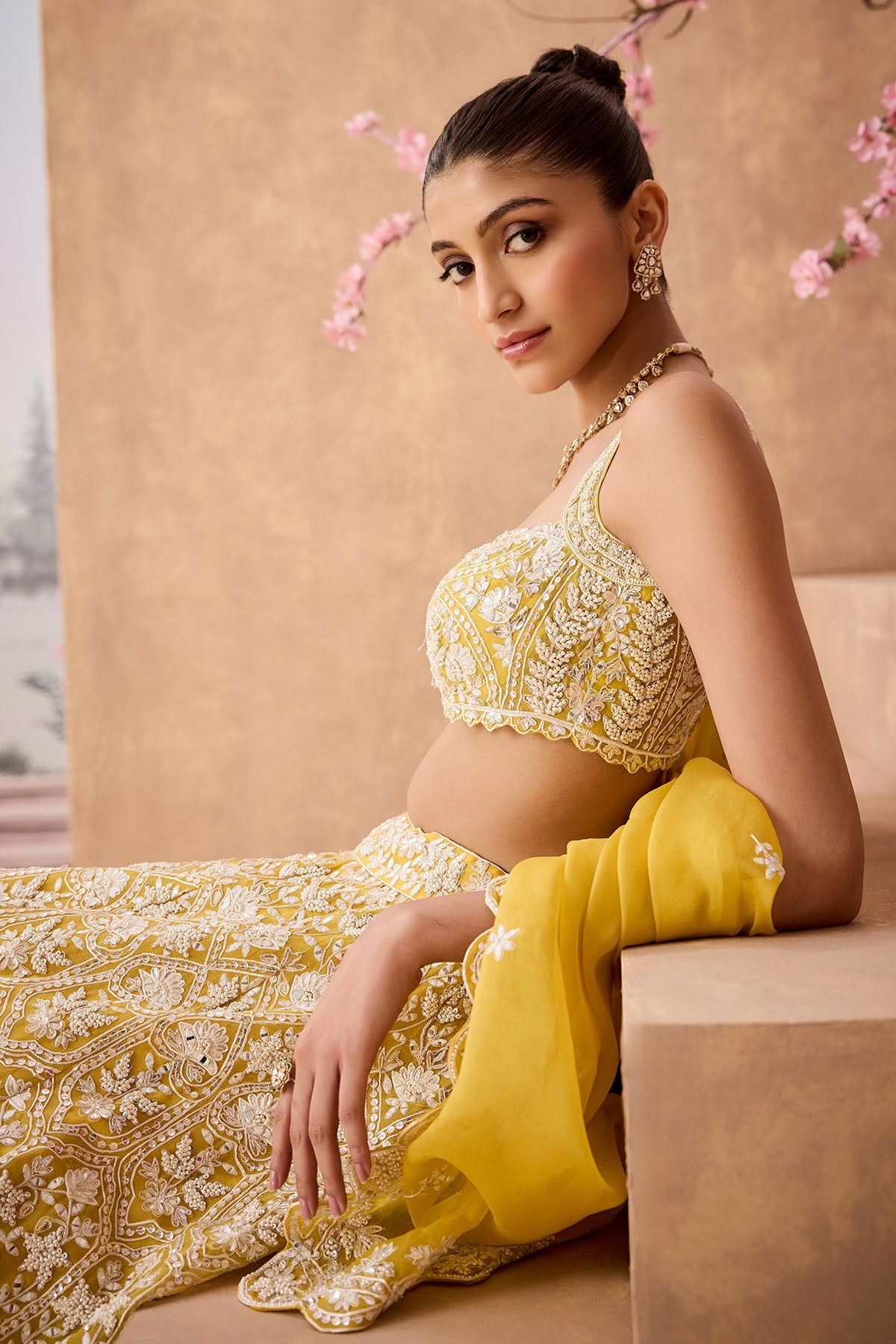 Fabric : Lehenga: 100% silk Organza, Dupatta: 100% silk organza